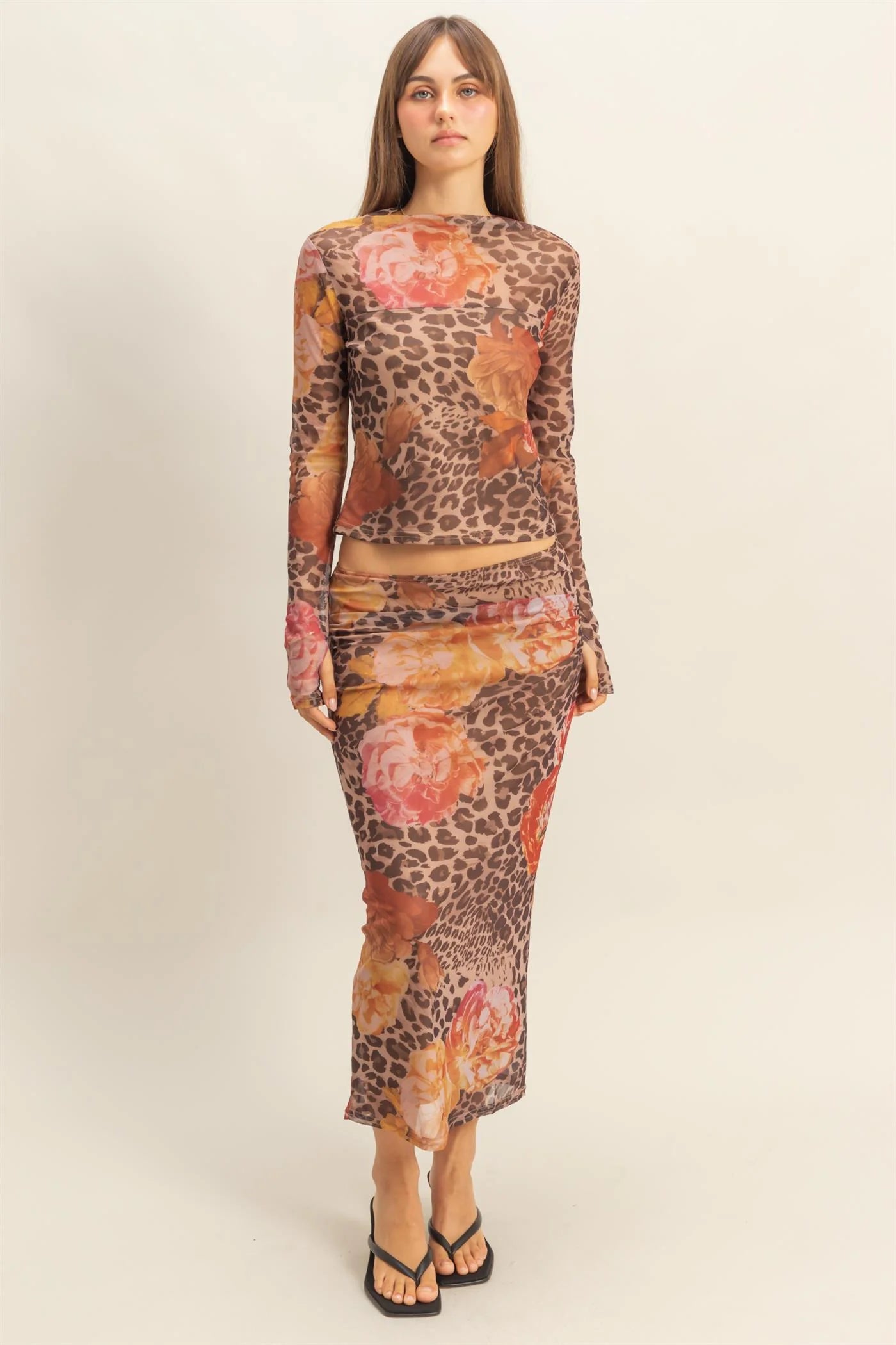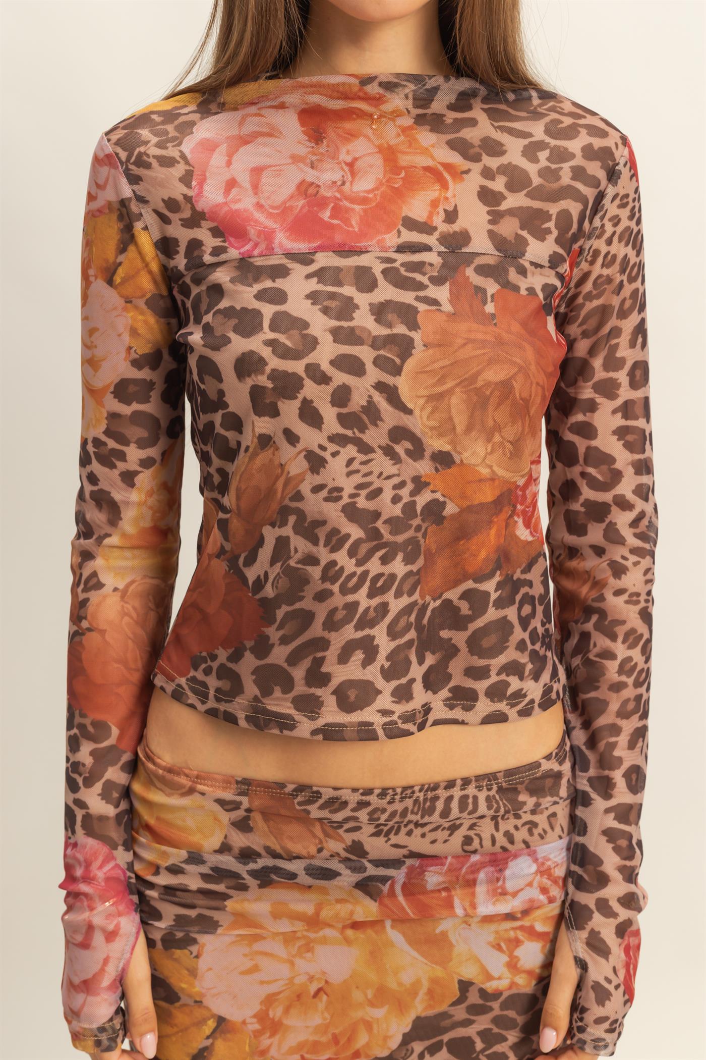 Descripción: Set 2 piezas, mesh de animal print con flores.